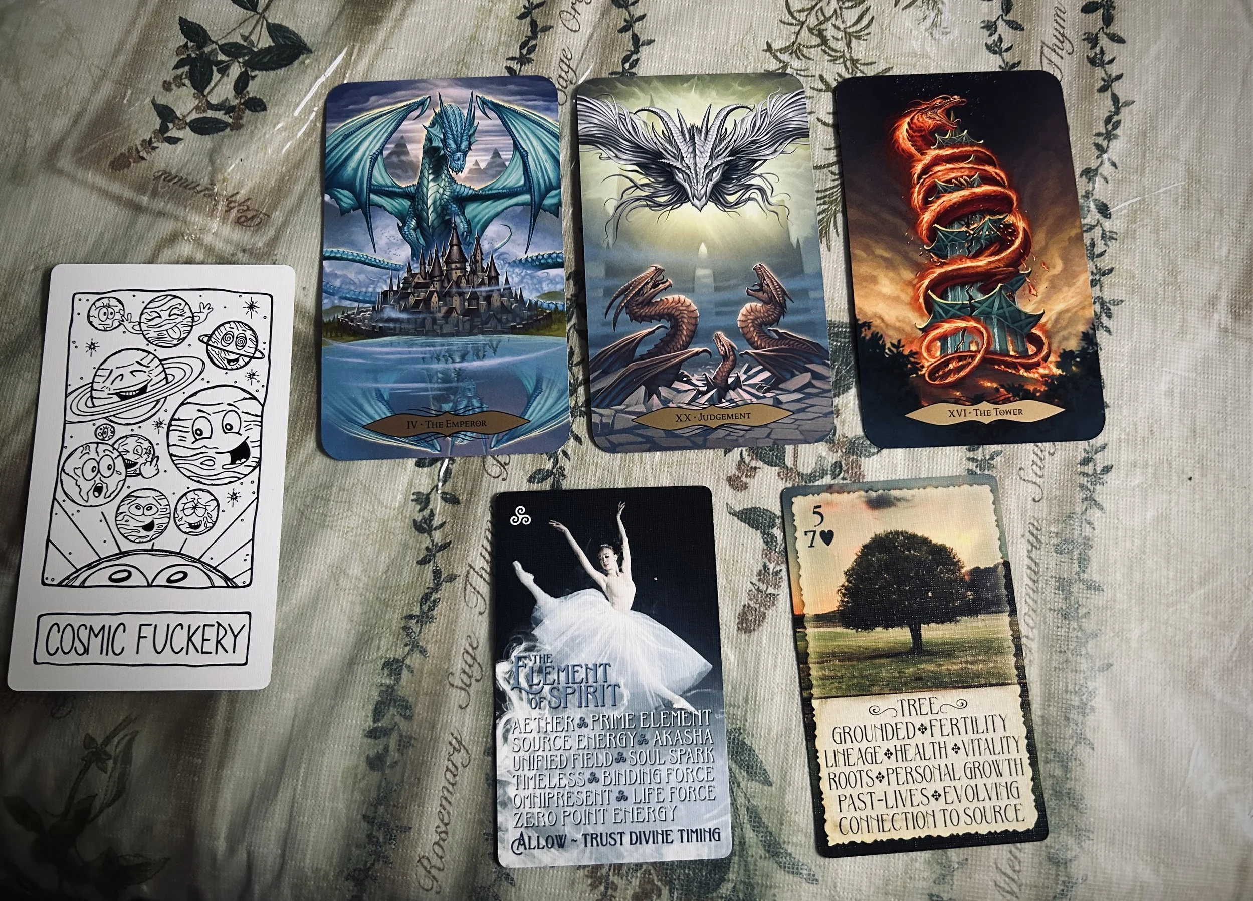 I’m getting that a lot of you that picked this pile are undergoing some sort of identity crisis— trying to figure out who you are, and what your purpose is. You’re on the right track, but you need to block out all of the “noise”. For those who are easily influenced, I’m hearing that “you gotta think for yourself.” I keep hearing that, over and over. Someone has to break free of their “programming”— breaking free of expectations placed upon you, and any external validation.
